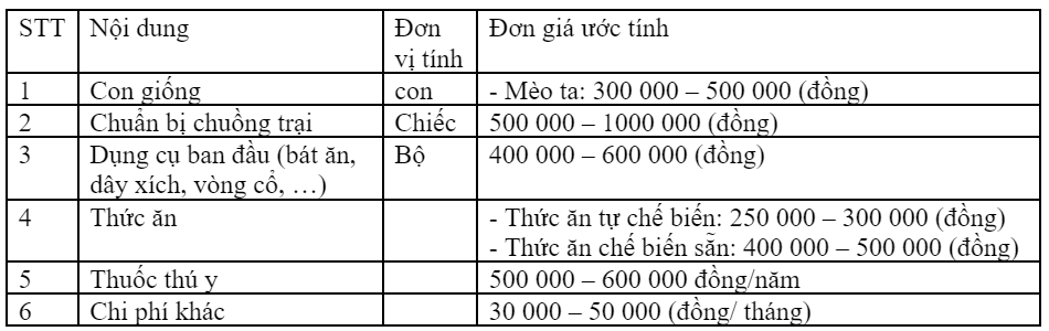 Hãy lập kế hoạch và tính toán chi phí cho việc nuôi dưỡng và chăm sóc một vật nuôi phổ biến ở địa phương em.
