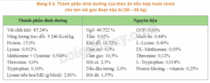 Hãy nêu thành phần dinh dưỡng của thức ăn hỗn hợp hoàn chỉnh trong bảng 9.3. Hãy phân biệt thức ăn hỗn hợp hoàn chỉnh và thức ăn đậm đặc.