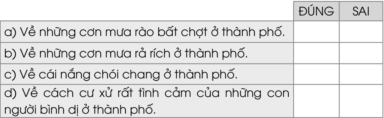 a. Về những cơn mưa rào bất chợt ở thành phố.