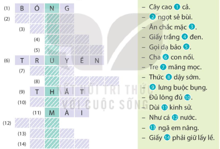 Em dựa vào gợi ý để giải các ô chữ.