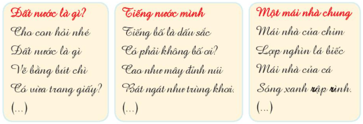 Nêu tên tác giả các bài thơ dưới đây. Đọc thuộc 2 – 3 khổ thơ trong một bài thơ em đã đọc.