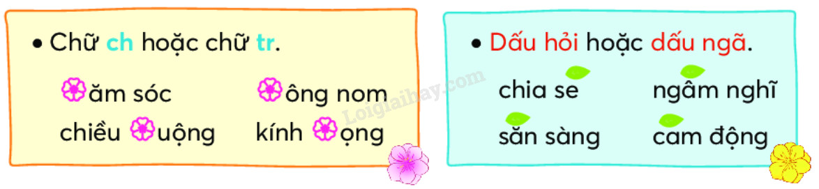 c. Chọn chữ hoặc dấu thanh thích hợp với mỗi ô hoa, ô lá: