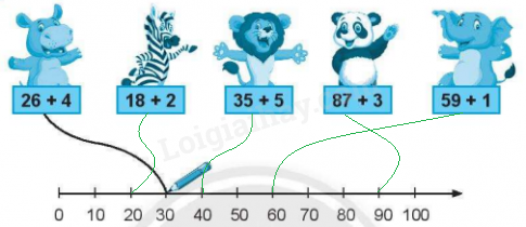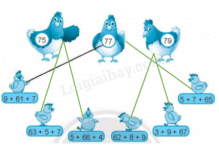 Tính tổng rồi nối với với số là kết quả của phép tính vừa tìm được.