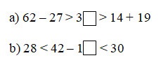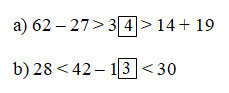 b) Ta có: 28 < 29 < 30, do đó : 42 – 1\(\square\) = 29.
