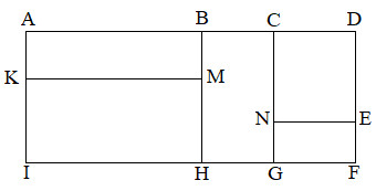 Hình đã cho có các hình chữ nhật : ABMK, ABHI, ACGI, ADFI, BCGH, BDFH, CDEN, ENGF, CDFG, KMHI