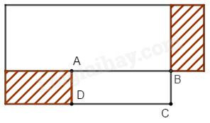 Nhìn vào hình vẽ, ta thấy diện tích phần tăng thêm chính là diện tích hình chữ nhật ABCD. Hình chữ nhật ABCD có chiều rộng AD là 5m, chiều dài AB bằng hai lần chiều rộng cũ trừ đi 5m.