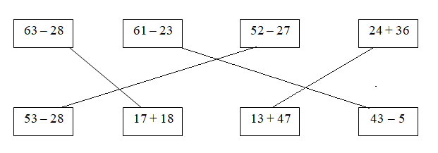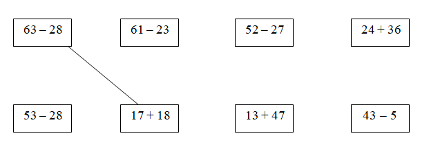 Thực hiện các phép tính trong ô, rồi nối hai phép tính có kết quả bằng nhau với nhau.