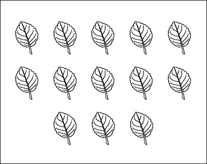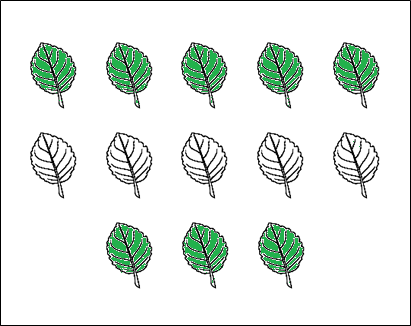 Bài 5. Trong hình bên là những chiếc lá. Em hãy tô màu vào một số chiếc lá, sao cho còn lại 5 chiếc lá chưa tô màu.