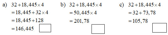Phương pháp giải: Biểu thức có chứa phép cộng và phép nhân thì thực hiện phép nhân trước, thực hiện phép cộng sau.