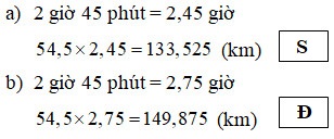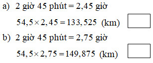 Một ô tô trung bình mỗi giờ đi được 54,5km. Hỏi trong 2 giờ 45 phút ô tô đi được bao nhiêu ki-lô-mét?
