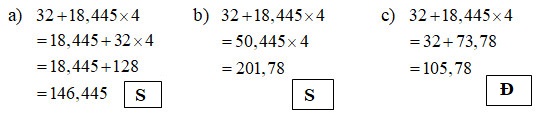 Bài 2: Đúng ghi Đ, sai ghi S vào ô trống: