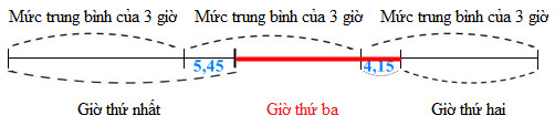 Vì vậy ta sẽ tính được mức trung bình của ba giờ = giờ thứ ba – 4,15 + 5,45