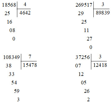 a) \(18568:4 = 4542\)