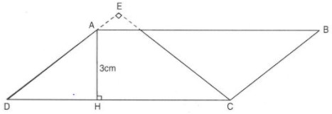 Bài 5.  Cho hình bình hành ABCD (như hình vẽ) có diện tích 24cm2. Chiều cao AH là 3cm và bằng  chiều cao CE. Tính chu vi của hình bình hành đó.
