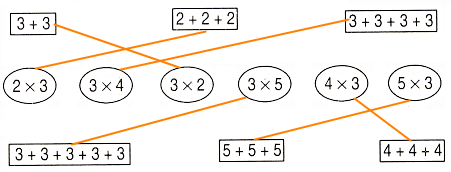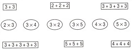 Ta chuyển thành phép nhân như sau: 3 + 3 = 3 × 2.