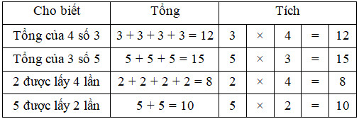 – Từ tổng các số hạng ta viết được dưới dạng tích, trong đó số hạng được lấy viết trước, số lần được lấy viết sau