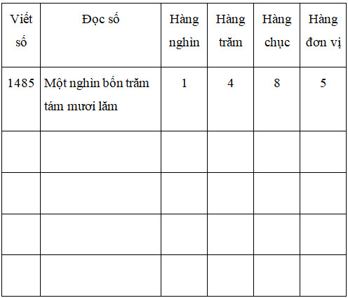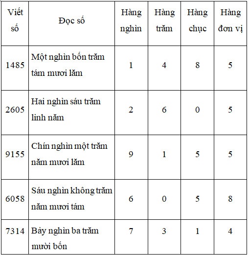 Bài 1. Viết số có bốn chữ số (khác 0) tùy ý vào ô trống trong bảng sau ( theo mẫu):