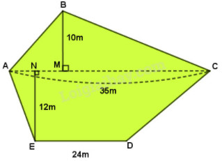 – Diện tích vườn rau = diện tích hình tam giác ABC + diện tích hình thang ACDE.