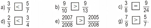 – Trong hai phân số có cùng mẫu số, phân số nào có tử số bé hơn thì bé hơn, phân số nào có tử số lớn hơn thì lớn hơn, nếu tử số bằng nhau thì hai phân số bằng nhau.