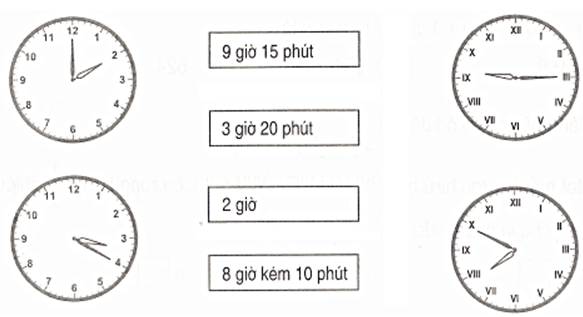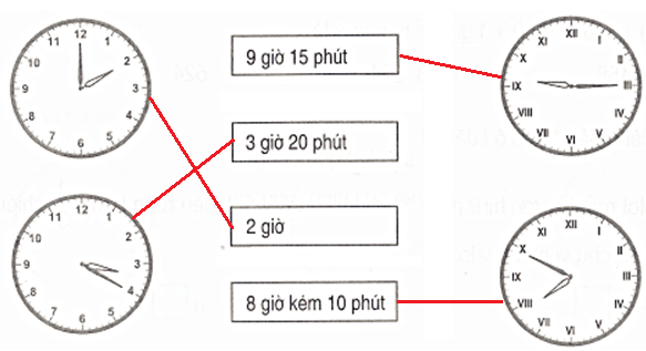 Bài 5. Nối đồng hồ với thời gian tương ứng