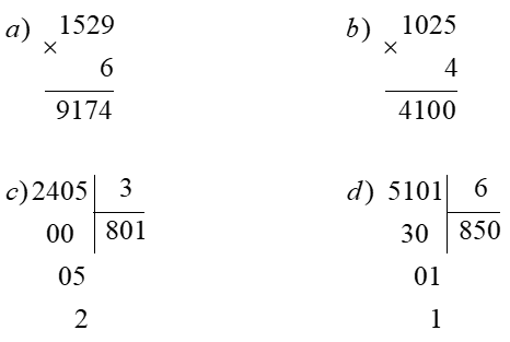 – Phép nhân: ta đặt tính sao cho các chữ số cùng hàng đặt thẳng cột với nhau, sau đó nhân lần lượt từ phải sang trái.