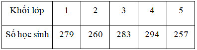 a) Khối lớp 1 có: 279 học sinh. Khối lớp 2 có: 260 học sinh.