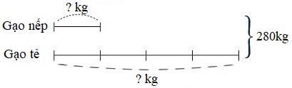 Bài 1. Một cửa hàng có tất cả 280kg gạo nếp và gạo tẻ. Tính số gạo mỗi loại, biết số gạo nếp bằng \(\dfrac{1}{4}\) số gạo tẻ.