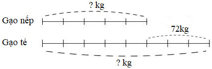 Bài 4. Một người bán được số gạo nếp ít hơn số gạo tẻ là 72kg. Trong đó số gạo nếp bằng \(\dfrac{5}{8}\) số gạo tẻ. Hỏi người đó bán được bao nhiêu ki-lô-gam gạo mỗi loại?