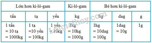 – Đổi đơn vị đo khối lượng về đơn vị ki-lô-gam.