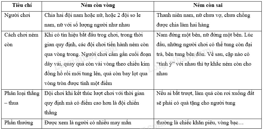 c. Quy định về cách chơi ném còn vòng khác ném còn xai như sau: