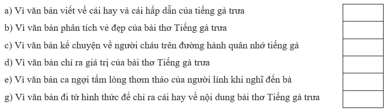 Đánh dấu X vào các ý trả lời đúng cho câu hỏi: “Tại sao văn bản Vẻ đẹp của bài thơ “Tiếng gà trưa một văn bản nghị luận?”:
