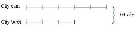 Trong một khu vườn người ta trồng tất cả 104 cây gồm 2 loại cây cam và cây bưởi. Biết 3 lần số cây cam bằng 5 lần số cây bưởi. Hỏi có bao nhiêu cây mỗi loại?