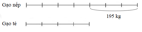 Một cửa hàng có số gạo nếp nhiều hơn số gạo tẻ là 195 kg. Tính số kg gạo mỗi loại biết rằng số gạo nếp bằng $\frac{7}{4}$ số gạo tẻ.
