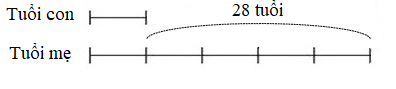 Mẹ sinh con năm mẹ 28 tuổi. Sau 3 năm nữa tuổi mẹ gấp 5 lần tuổi con. Tính tuổi mẹ hiện nay.