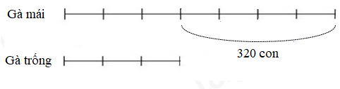 Một trại nuôi gà có số gà mái nhiều hơn số gà trống là 345 con. Sau khi mua thêm 25 con gà trống thì số gà trống bằng $\frac{3}{7}$ số gà mái. Hỏi lúc đầu trang trại có bao nhiêu con gà trống, bao nhiêu gà mái.