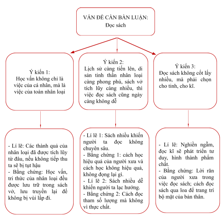Xác định câu chủ đề để nhận biết ý kiến, lí lẽ, bằng chứng trong văn bản. Từ đó vẽ sơ đồ chỉ ra mối liên hệ giữa ý kiến, lí lẽ, bằng chứng