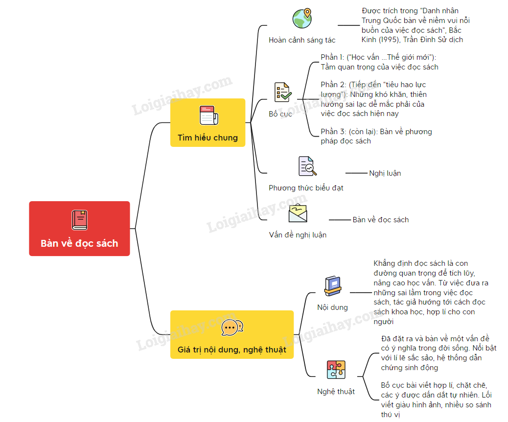 Sơ đồ tư duy về văn bản “Bàn về đọc sách”: