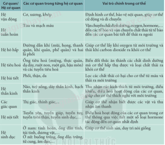 2. Các cơ quan và hệ cơ quan trong cơ thể có vai trò như thế nào?