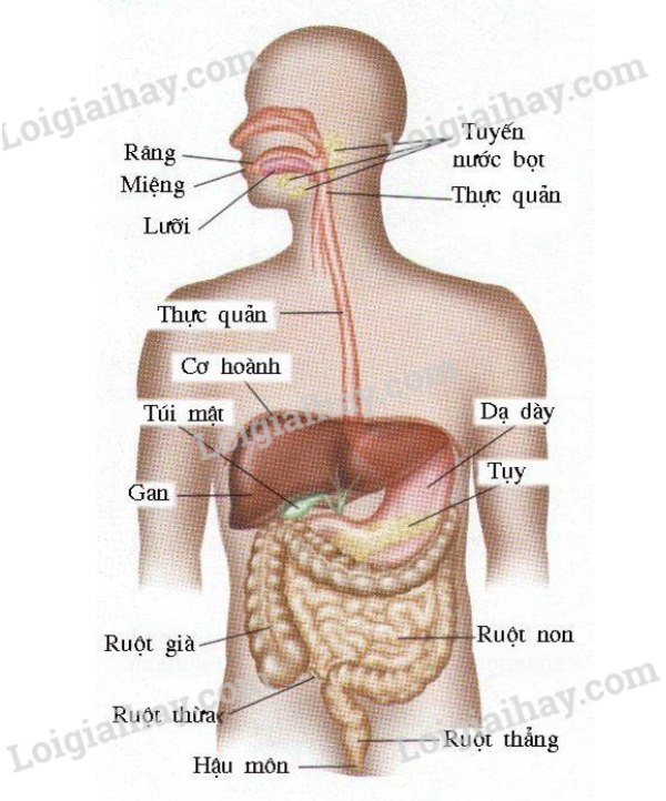 Hệ tiêu hóa có các cơ quan phối hợp thực hiện chức năng tiêu hóa thức ăn cung cấp chất dinh dưỡng cho cơ thể.