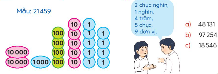 Xác định chữ số hàng chục nghìn, hàng nghìn, hàng trăm, hàng chục, hàng đơn vị rồi viết số.