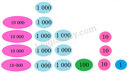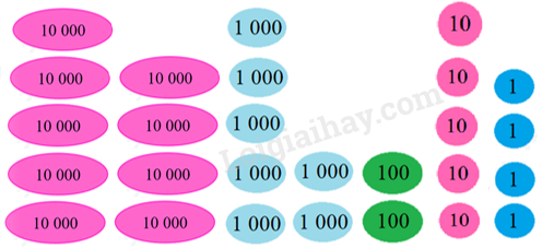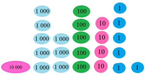 Dùng các thẻ 10 000, 1 000, 100, 10, 1 thể hiện số.