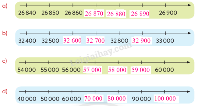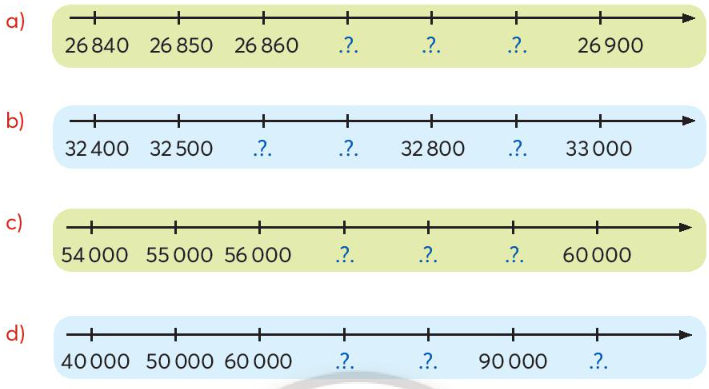 Đếm xuôi các số thêm 10, 100, 1 000, 10 000 rồi viết số thích hợp vào chỗ trống.