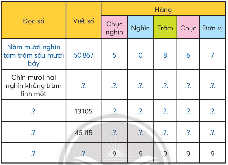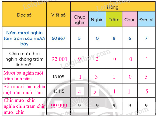 Viết số hoặc đọc số có năm chữ số lần lượt từ trái sang phải.