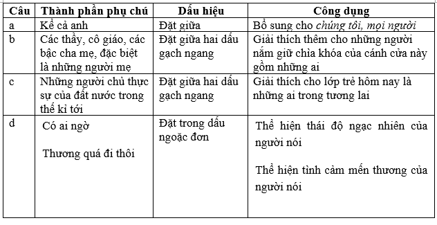 Tìm thành phần phụ chú trong các đoạn trích sau và cho biết chúng bổ sung điều gì.
