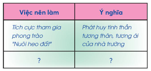 – Em sẽ làm gì để giữ gìn và phát huy truyền thống của nhà trường? Chia sẻ ý kiến của em với các bạn theo gợi ý.