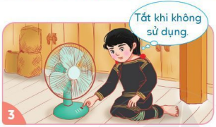 Bạn nữ đã tắt quạt khi không sử dụng đến. Việc làm này giúp bảo quản đồ dùng gia đình, tiết kiệm điện.