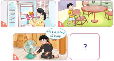 Bạn nữ đã tắt quạt khi không sử dụng đến. Việc làm này giúp bảo quản đồ dùng gia đình, tiết kiệm điện.