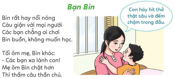 b. Mẹ đã khuyên Bin rằng mỗi khi Bin thấy giận dữ thì hãy hít thở thật sâu, khẽ đếm trong đầu thật chậm một, hai, ba, … và những cơn tức giận từ đó sẽ dần tan biến.