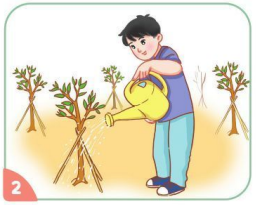 Bạn nam đang chăm sóc cho các cây ở quanh đường làng, ngõ phố nơi mình sinh sống