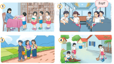 1. Các bạn đùa nghịch trong thư viện.  2. Khi đến vườn bách thú, Mạnh